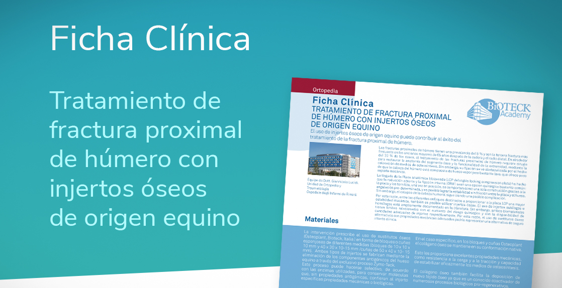 Se examinaron fracturas de grado 2 a 4 según Neer, tratadas con placas LCP e injerto concomitante de bloques y/o cuñas óseas de origen equino Osteoplant®.